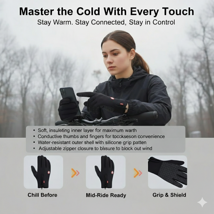 Stay warm, stay connected. Touchscreen-friendly, windproof, and waterproof — perfect for winter adventures.